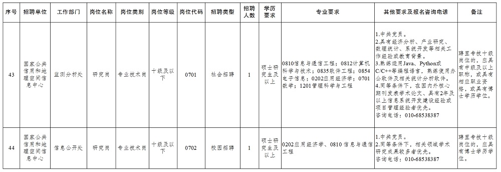 国家发展和改革委员会国家公共信用和地理空间信息中心2026年度第一批公开招聘公告