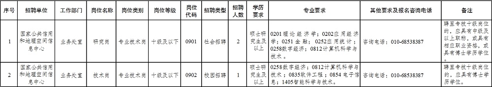 根据工作需要,按照中央和国家机关所属单位公开招聘有关政策规定,国家发展和改革委员会国家公共信用和地理空间信息中心2026年度第二批公开招聘计划已在中央和国家机关所属事业单位公开招聘服务平台、国家发展和改革委员会微信公众号公布。欢迎各大院校同学、社会人员报考。公开招聘计划具体如下。